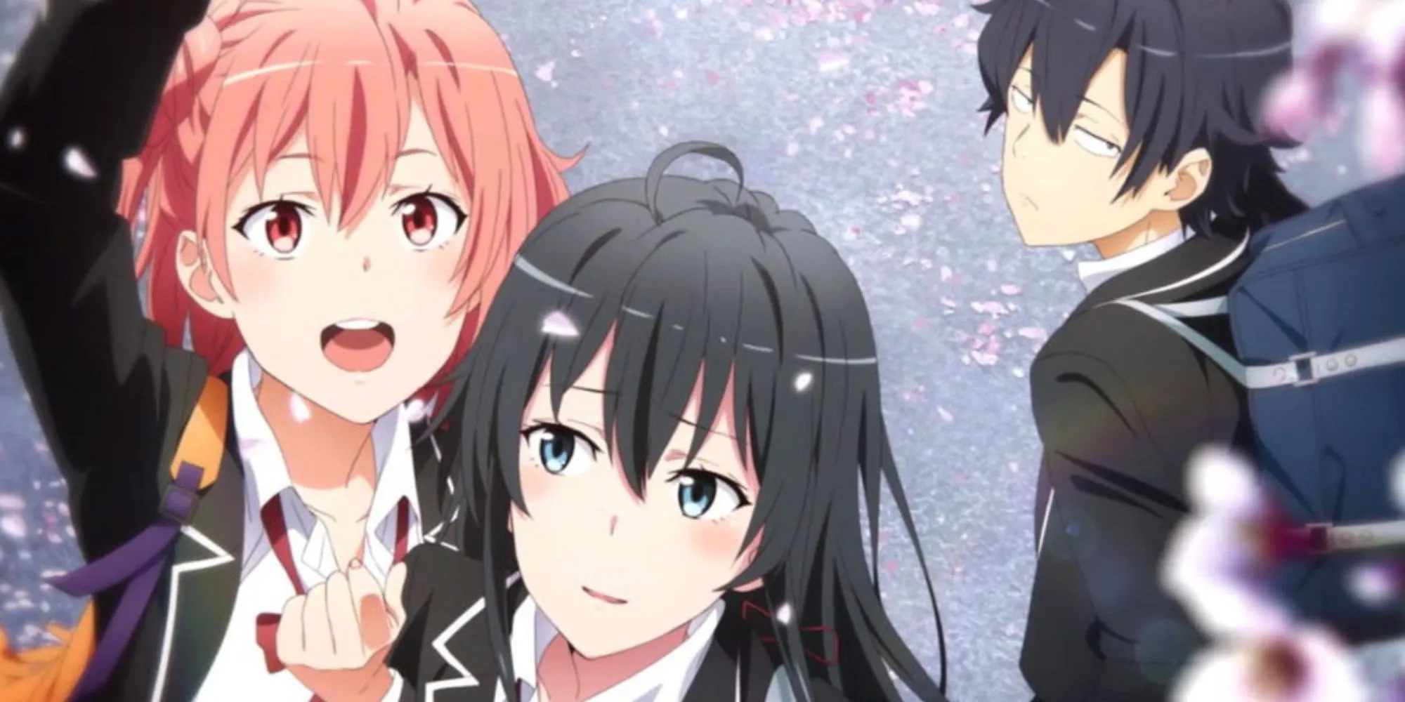 My Teen Romantic Comedy SNAFU, hình ảnh ba nhân vật chính thể hiện sự phức tạp trong mối quan hệ tuổi học trò.