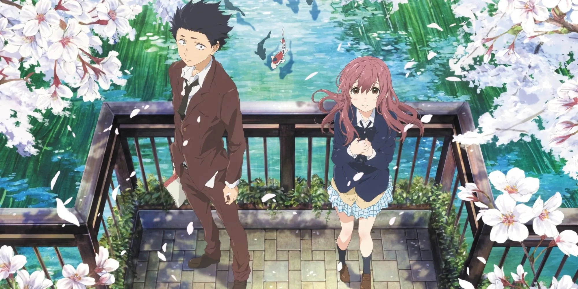 Shoya Ishida và Shoko Nishimiya từ áp phích phim anime A Silent Voice, biểu tượng cho câu chuyện về sự hối lỗi và hàn gắn.